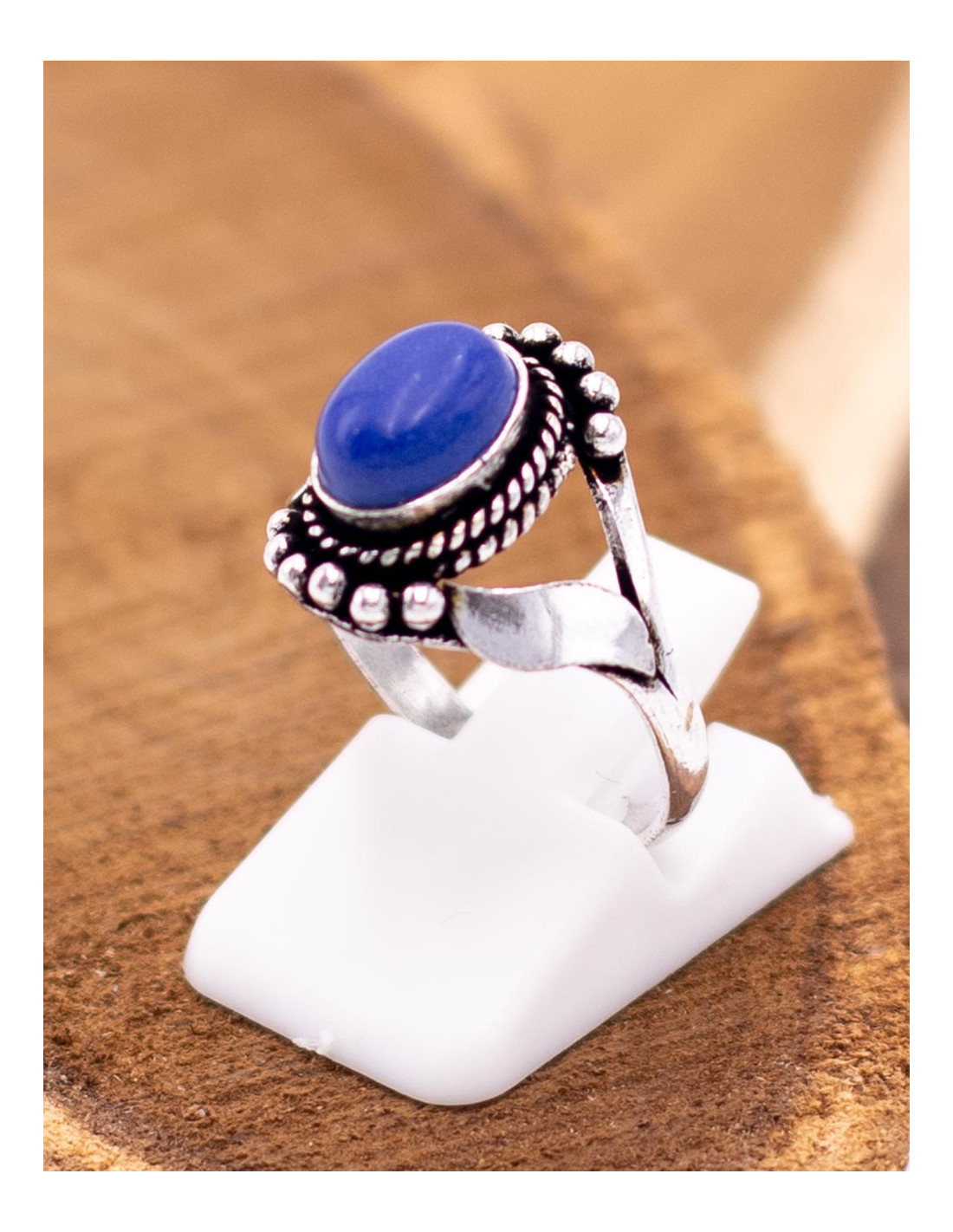 El anillo Kimago con piedra natural es una pieza de joyería de inspiración étnica que destaca por su presencia y su cuidada elaboración artesanal.