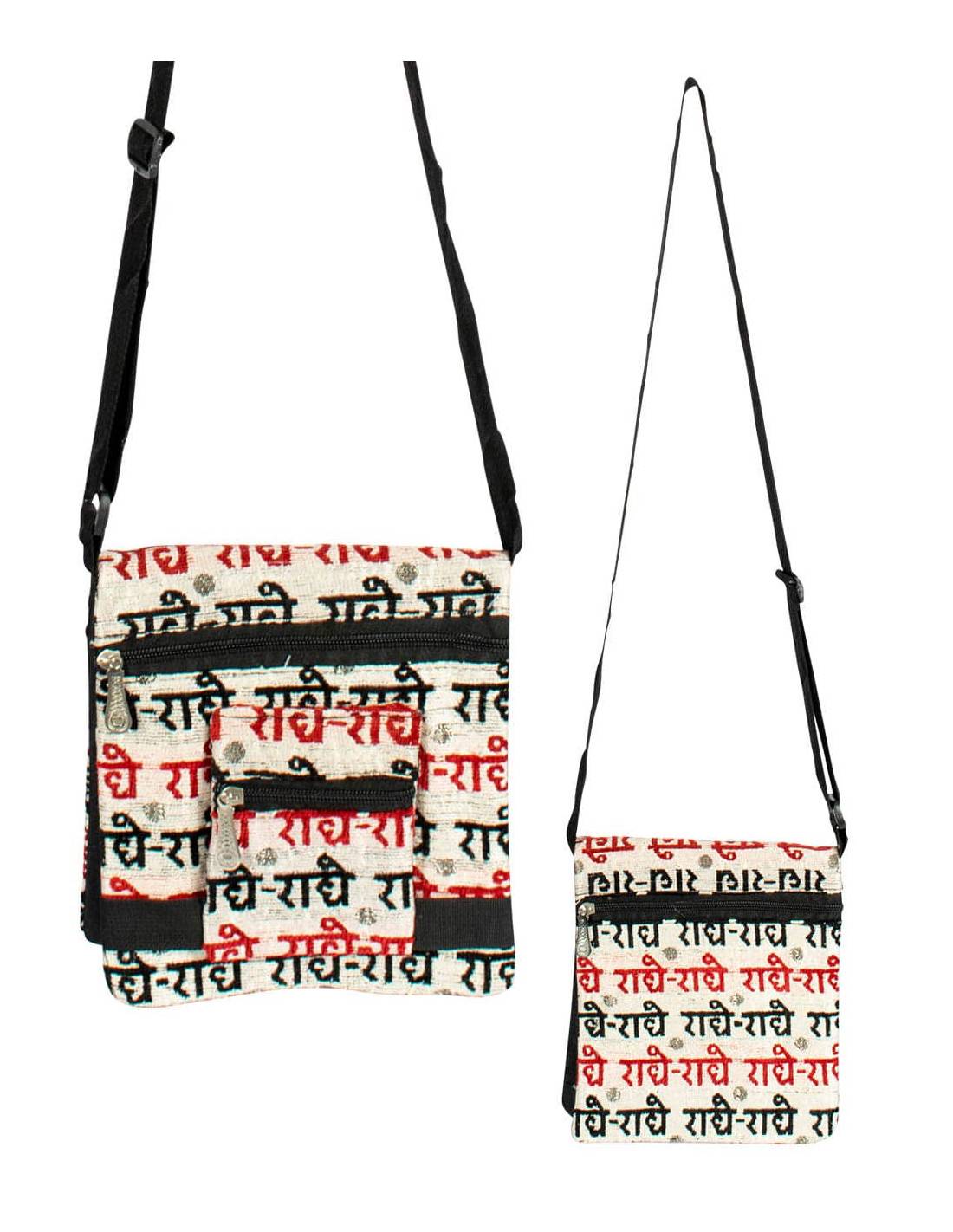 La inscripcion que tiene se traduce como Radhe Radhe, que es un saludo a Dios, siendo este uno de los saludos más utilizados entre la comunidad Vaishnava. Su significado seria: "Glorias a Radha"