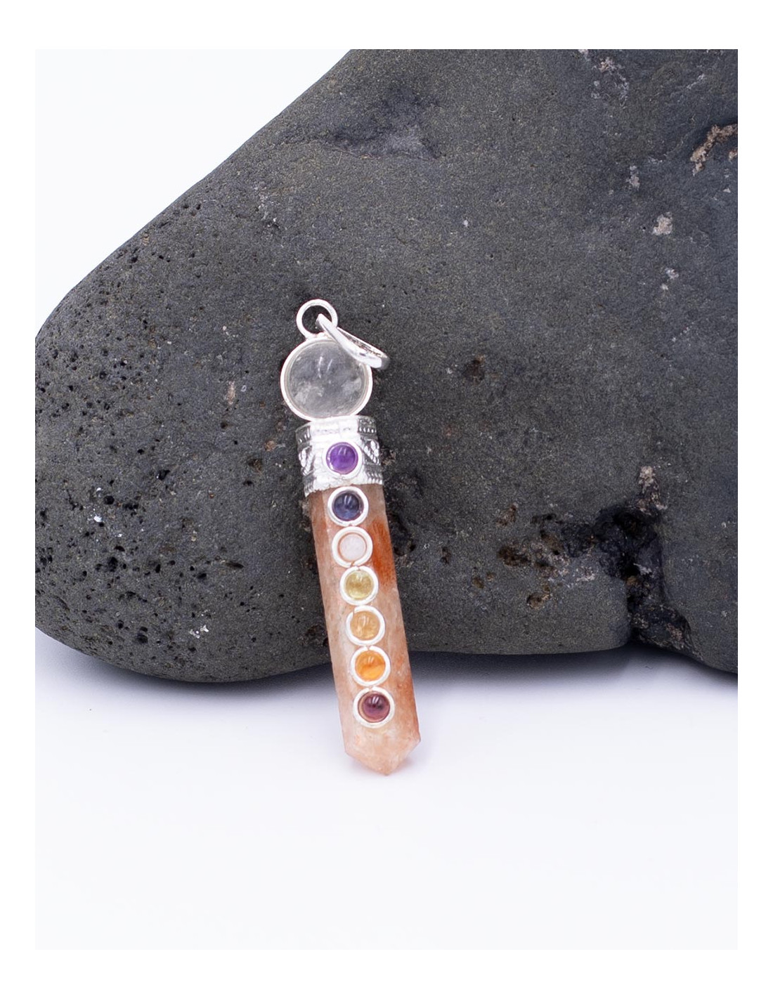 Colgante de piedra Piedra de Sol con 7 chackras y una bola en la parte superior