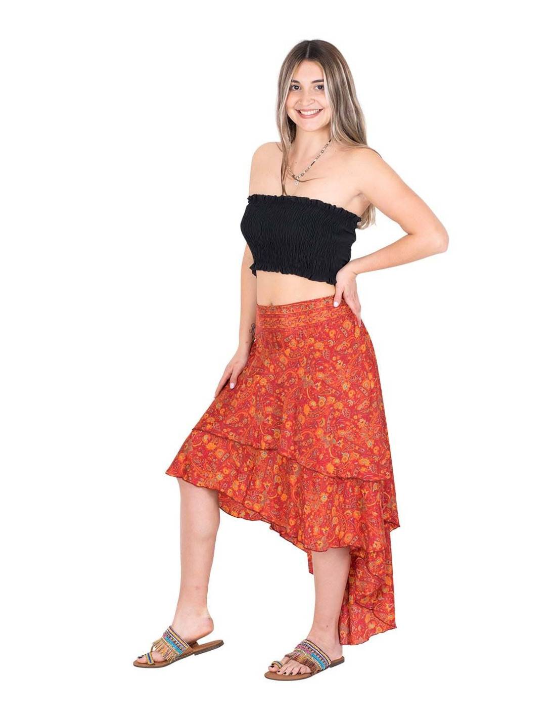 Vestido largo con excelente caída por estar fabricado en seda. En su estampado prevalece el rosa, pero posee detalles verdes
