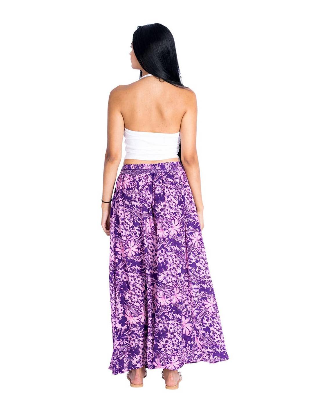 Mono corto y amplio estilo vestido, estampado con fondo rosa con dibujos en azul y verde, entre otros