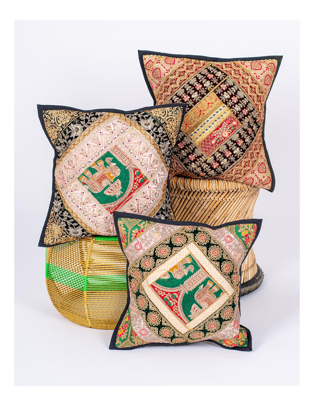 Funda de cojín 40x40 en algodón negro con bordados indios brillantes.
