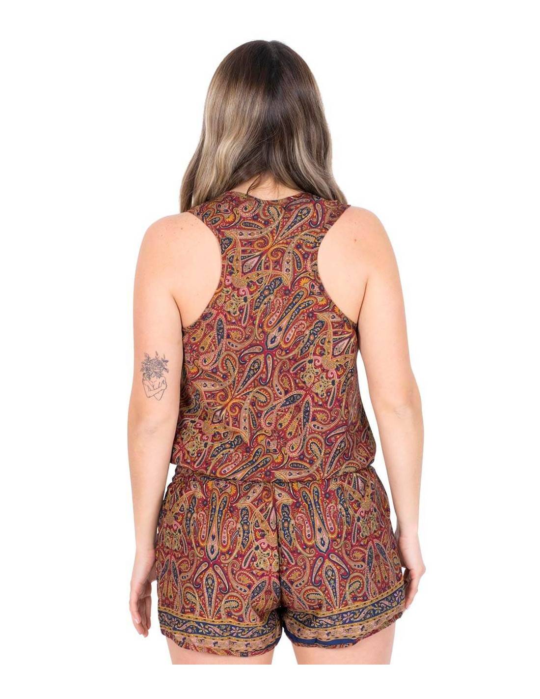 Monos y Multifuncion Mono Seda Azul PW0031B Mono corto muy fresco y cómodo confeccionado en seda estampada en color azul Vista