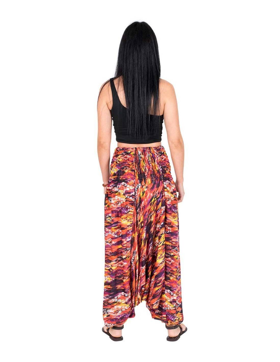 Se trata de un vestido estampado en diferentes tonos de azul y rojo