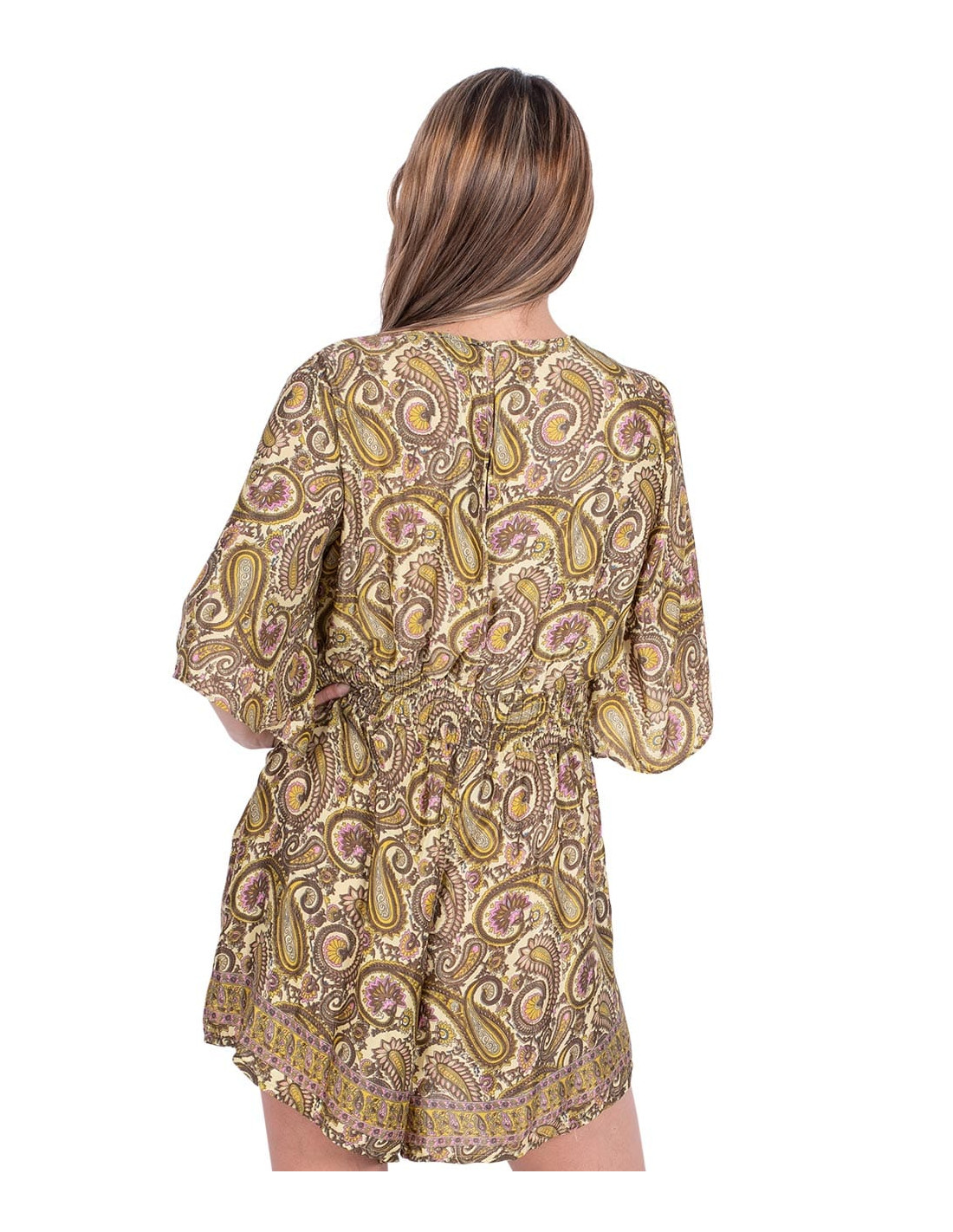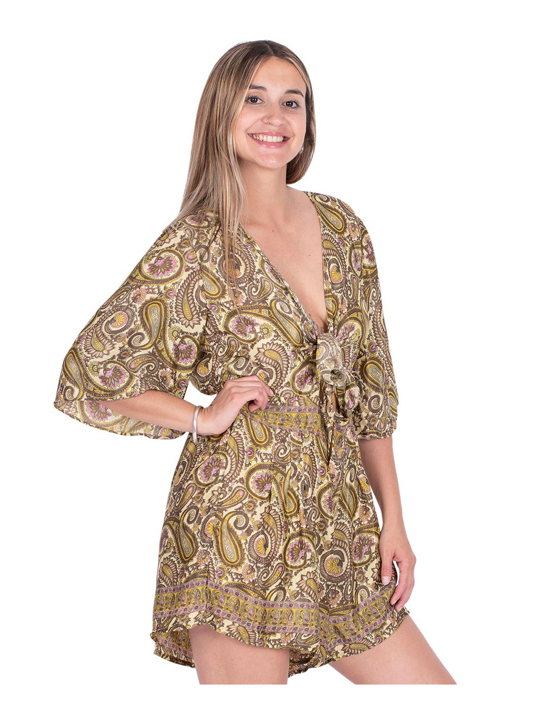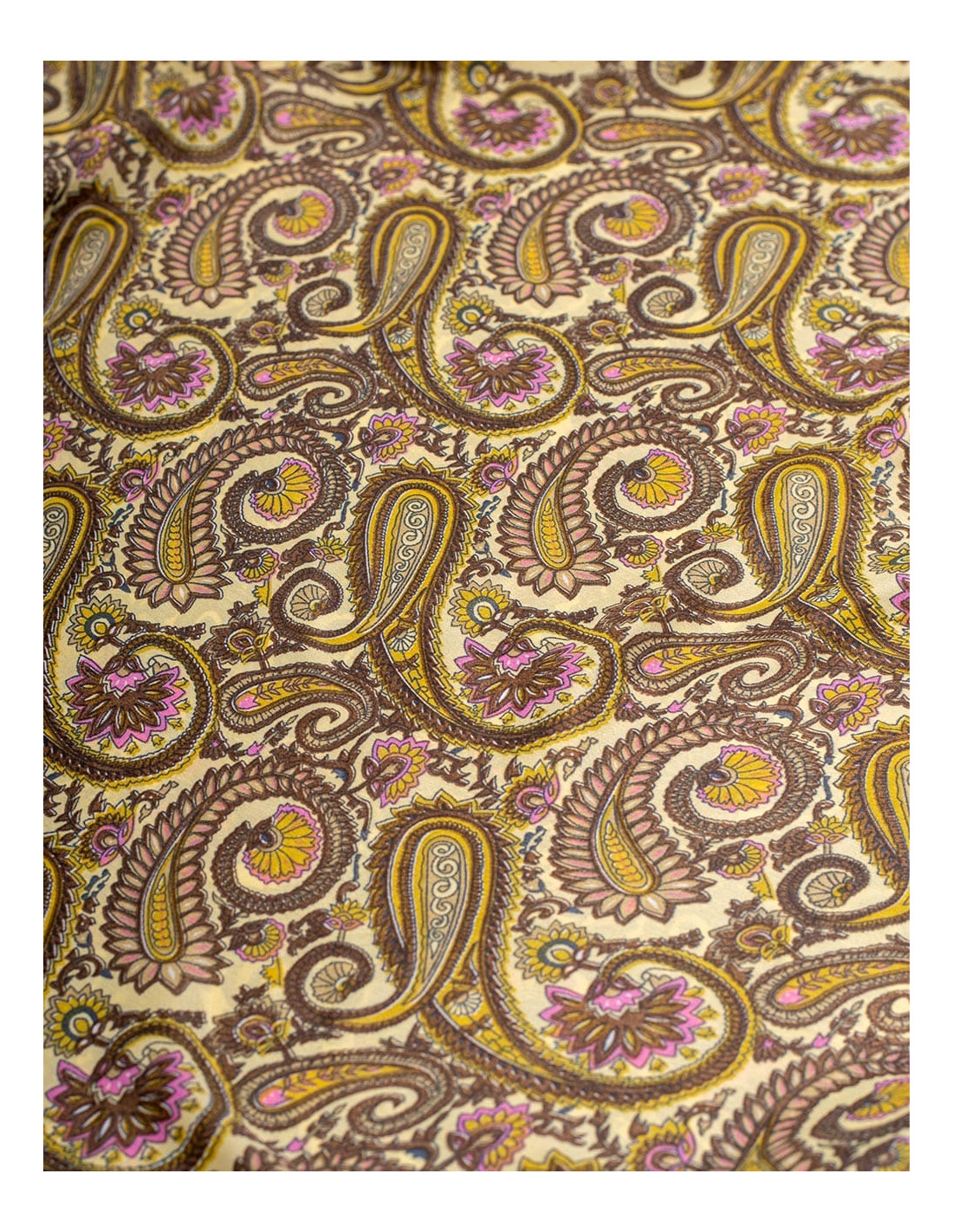 Tapiz étnico de algodón pintado con la tecnica batik con muchos colores en el fondo y la imagen de una persona meditando en color negro