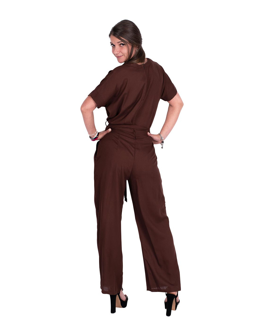 Set de top y kimono corto confeccionado en seda estampado con fondo morado y dibujos en varios colores