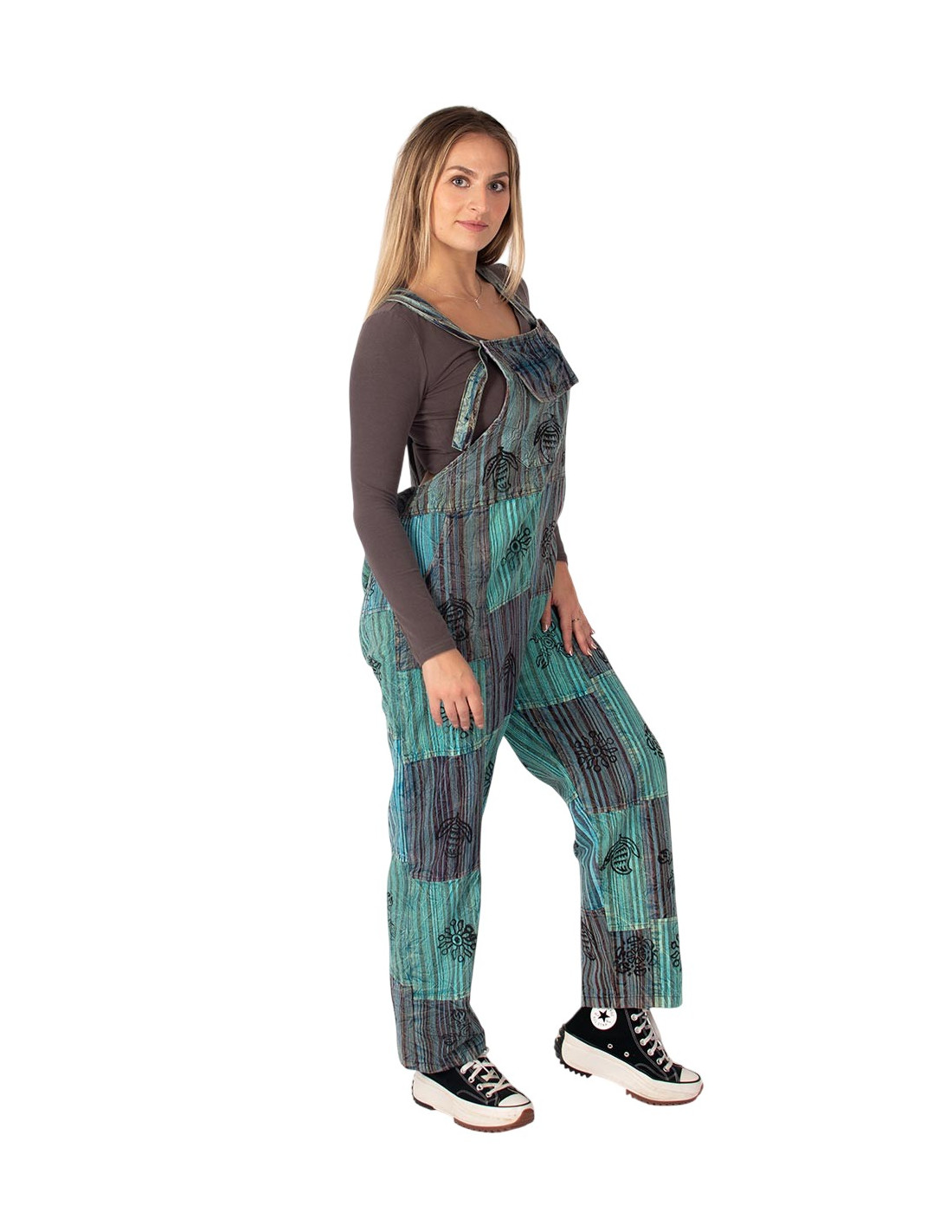 Mono unisex de algodón artesanal en tonos celeste o verde. Estilo boho relajado, cómodo y auténtico de Kimago.