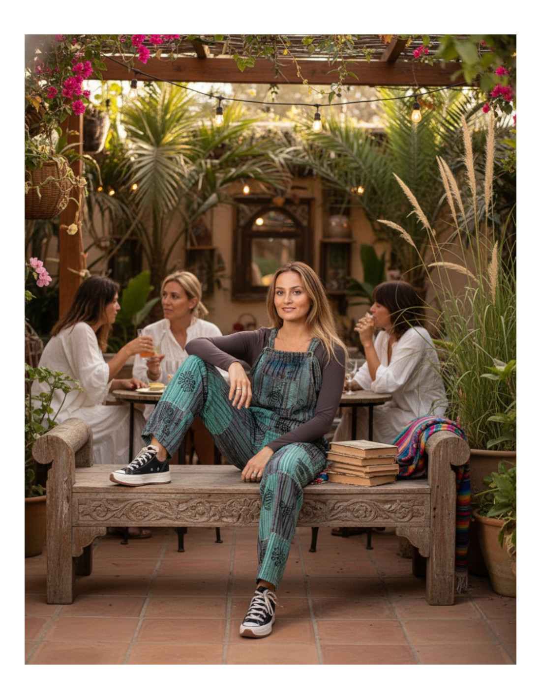 El mono boho unisex de Kimago es una prenda que refleja la esencia de la moda étnica con un toque fresco y contemporáneo.