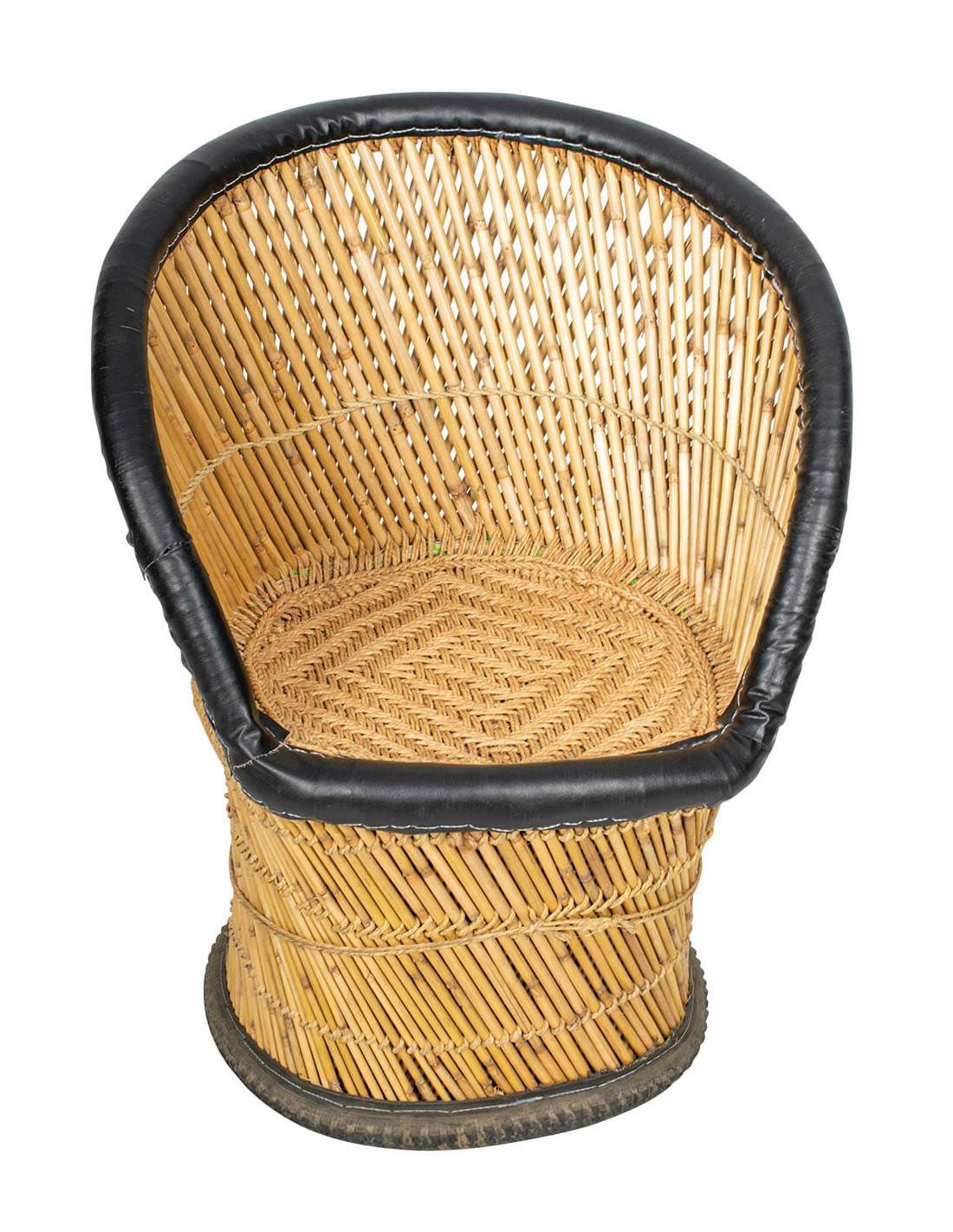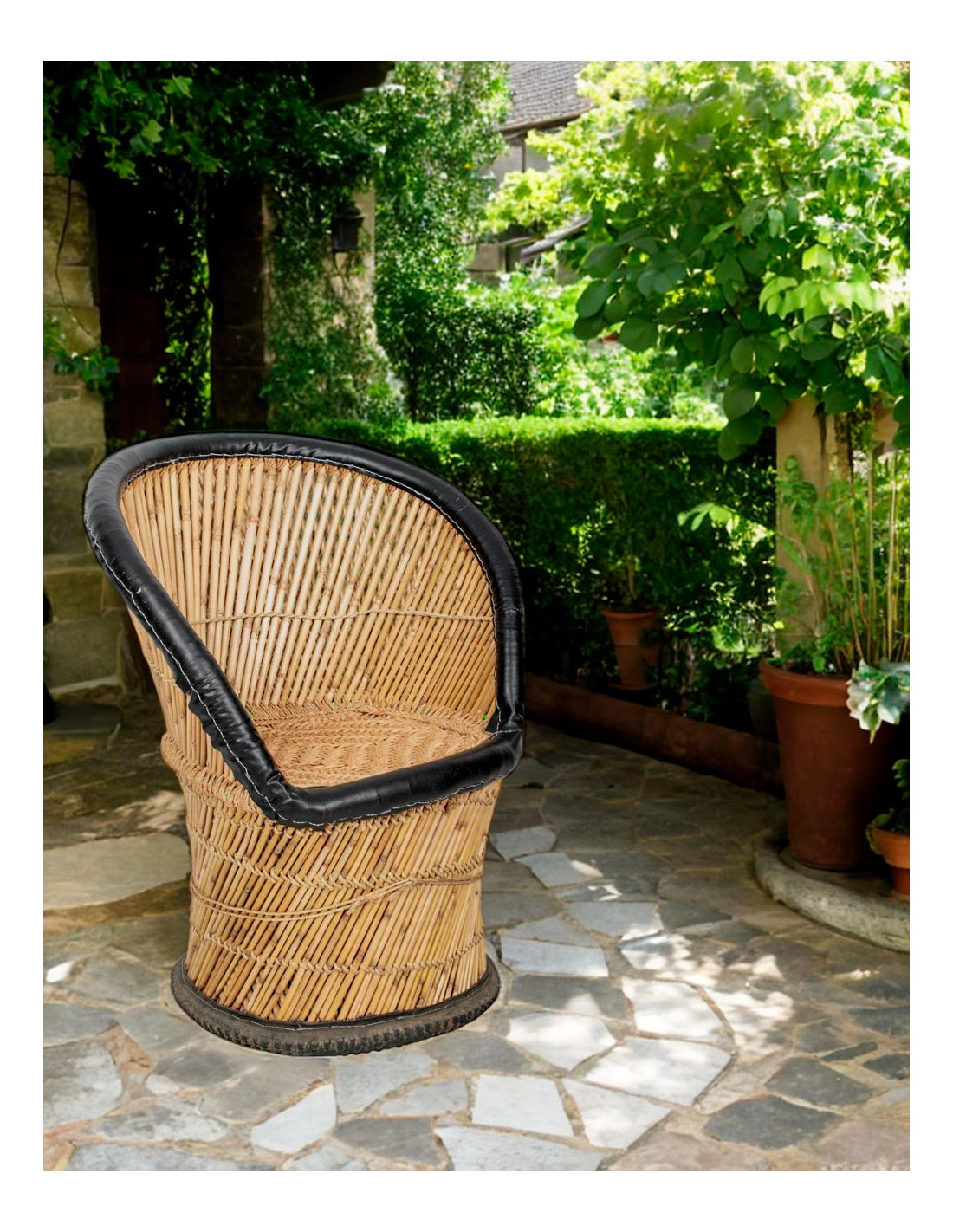 Sillón individual de yute con detalles en piel sintética | Fabricado artesanalmente en la India | Confort y estilo étnico