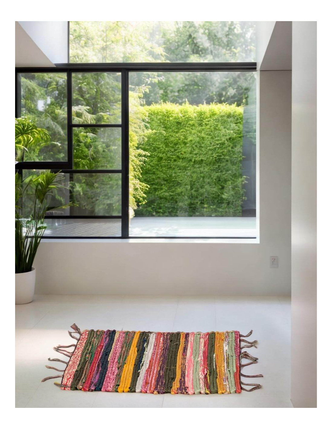 La alfombra étnica estilo hippie de Kimago es una pieza artesanal tejida a mano en la India que aporta alegría, autenticidad y carácter a cualquier espacio.