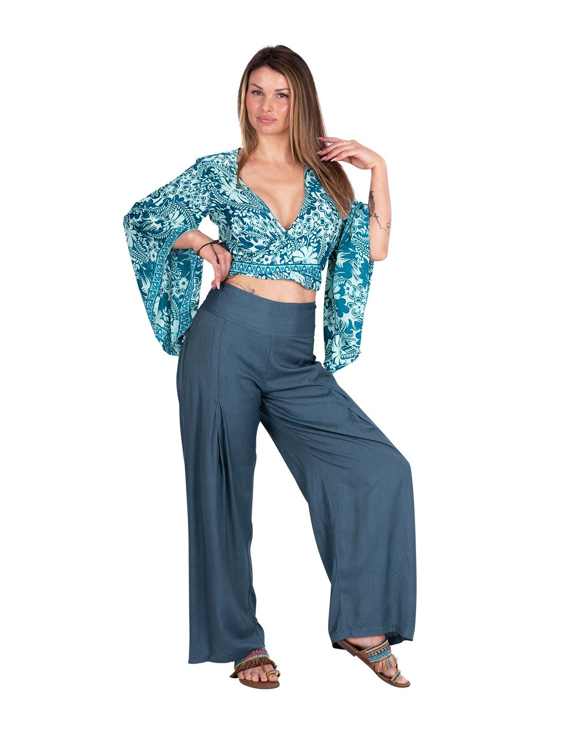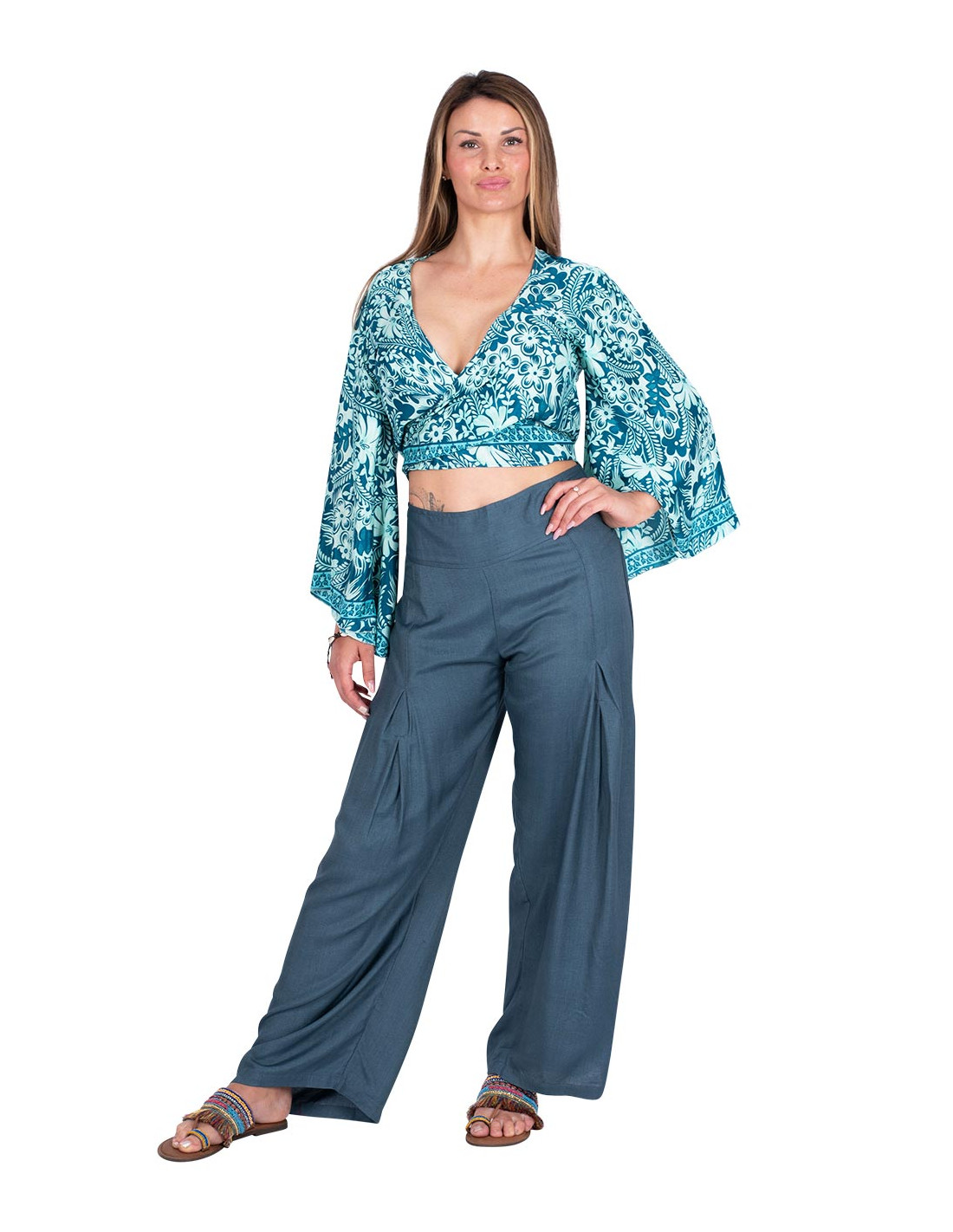 Top estilo chaleco mas largo adelante, se puede usar suelto, atado, solo o con un top debajo.