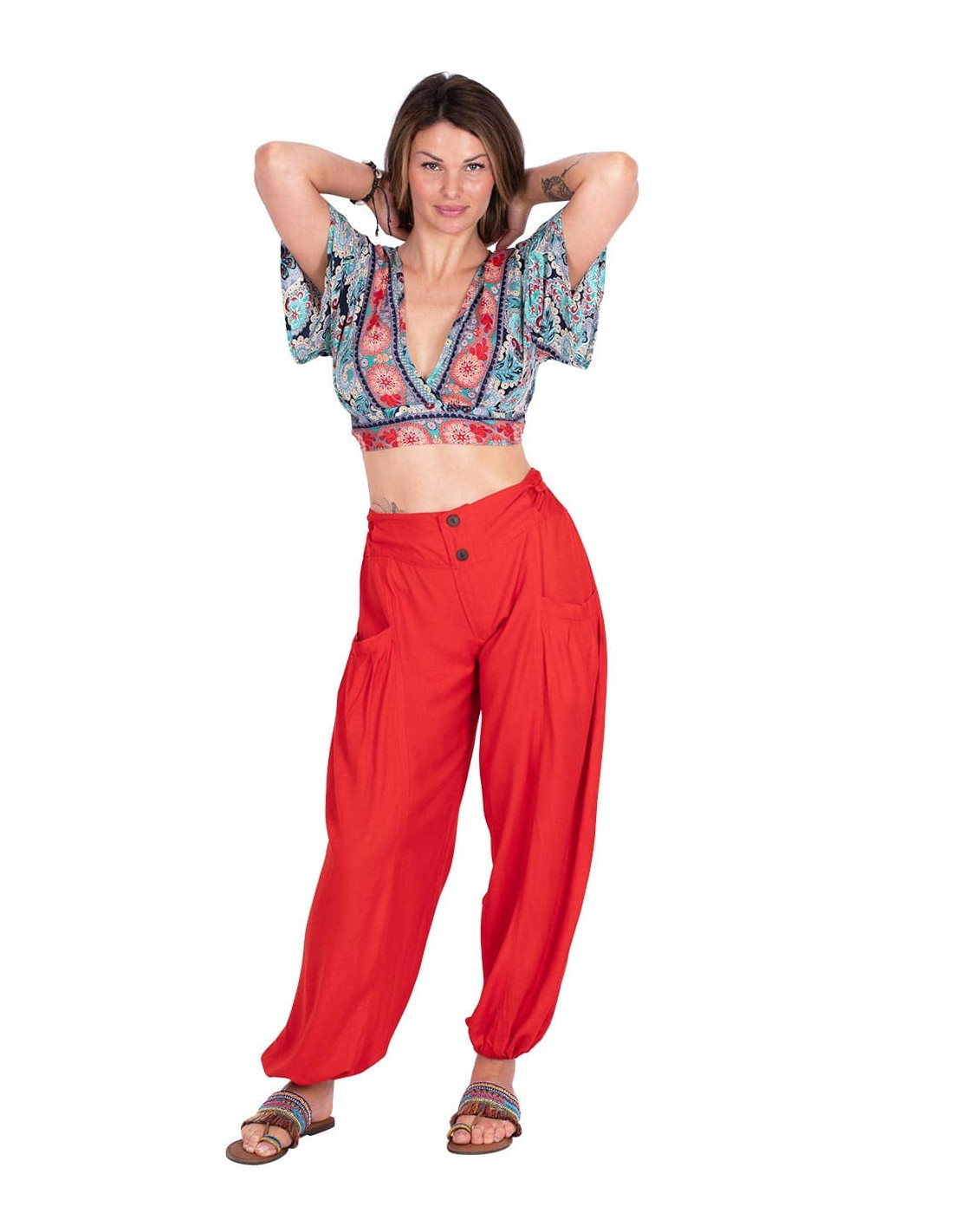 Vestido largo de talla unica amplia con mangas cortas. Fabricado en seda estampada rosa.