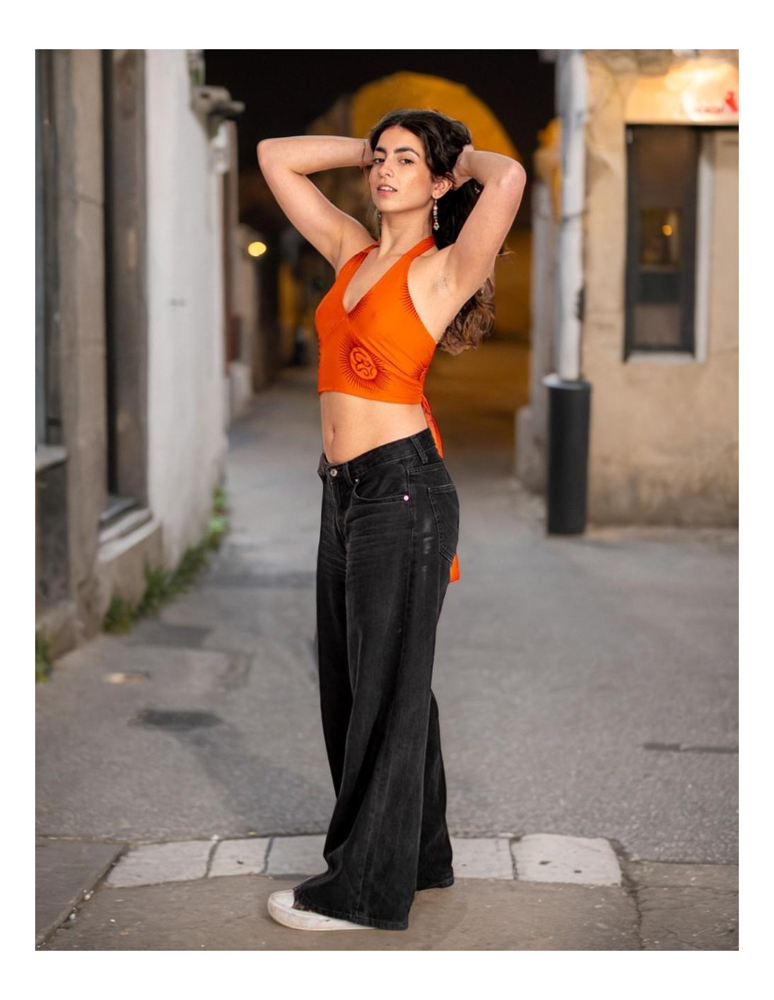 Top de seda cruzado con mangas amplias confeccionado en seda muy suave al tacto