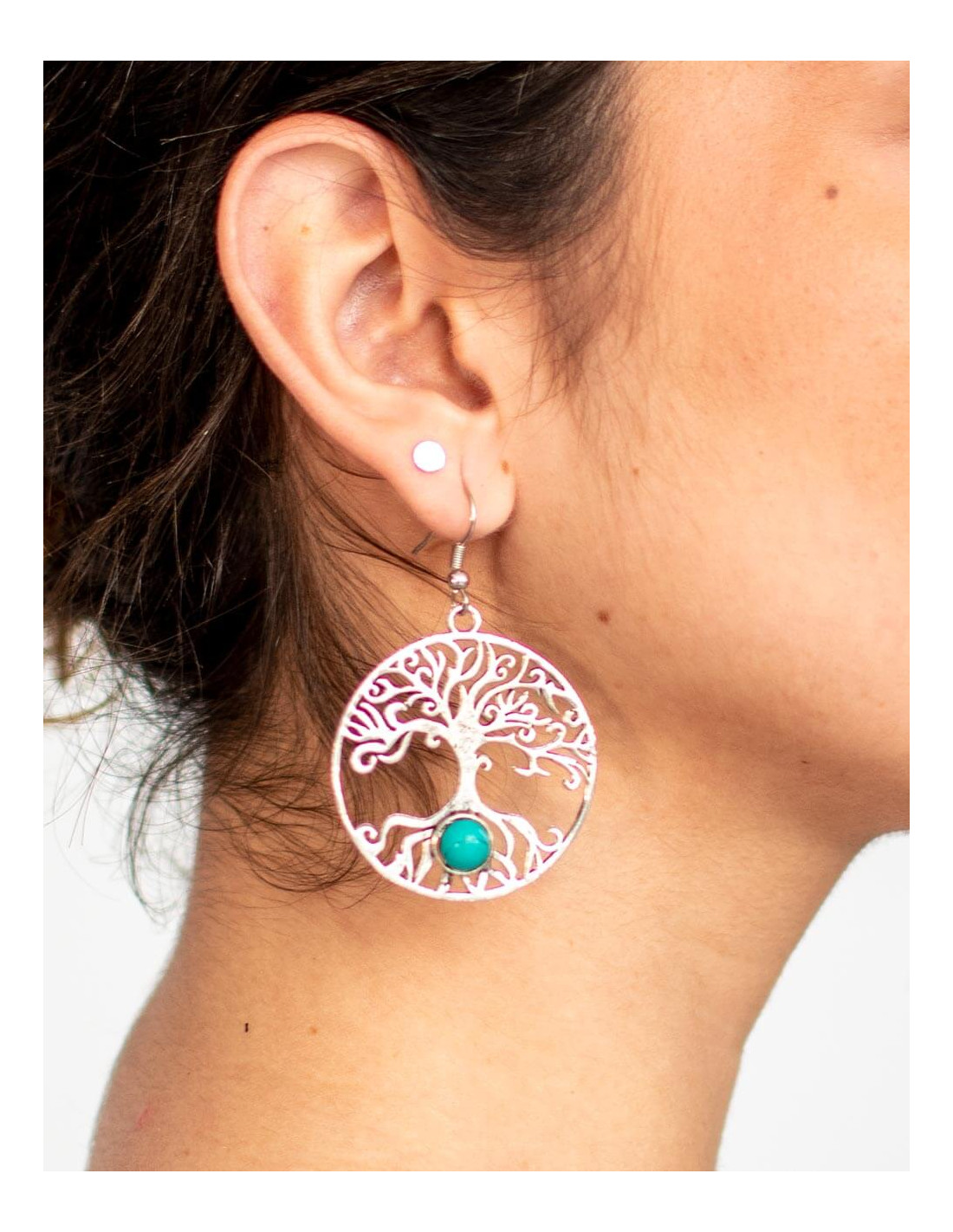 Pendientes de Latón Tallados a Mano con Piedra Mineral – Kimago