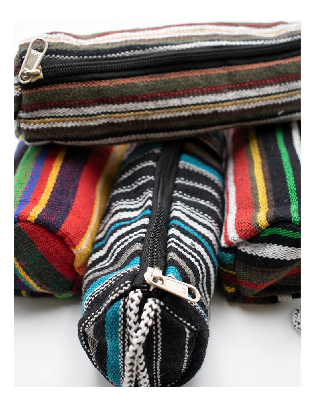 Bandolera unisex de cañamo con tela agregada en el bolsillo frontal, dichos colores pueden variar de una unidad a otra