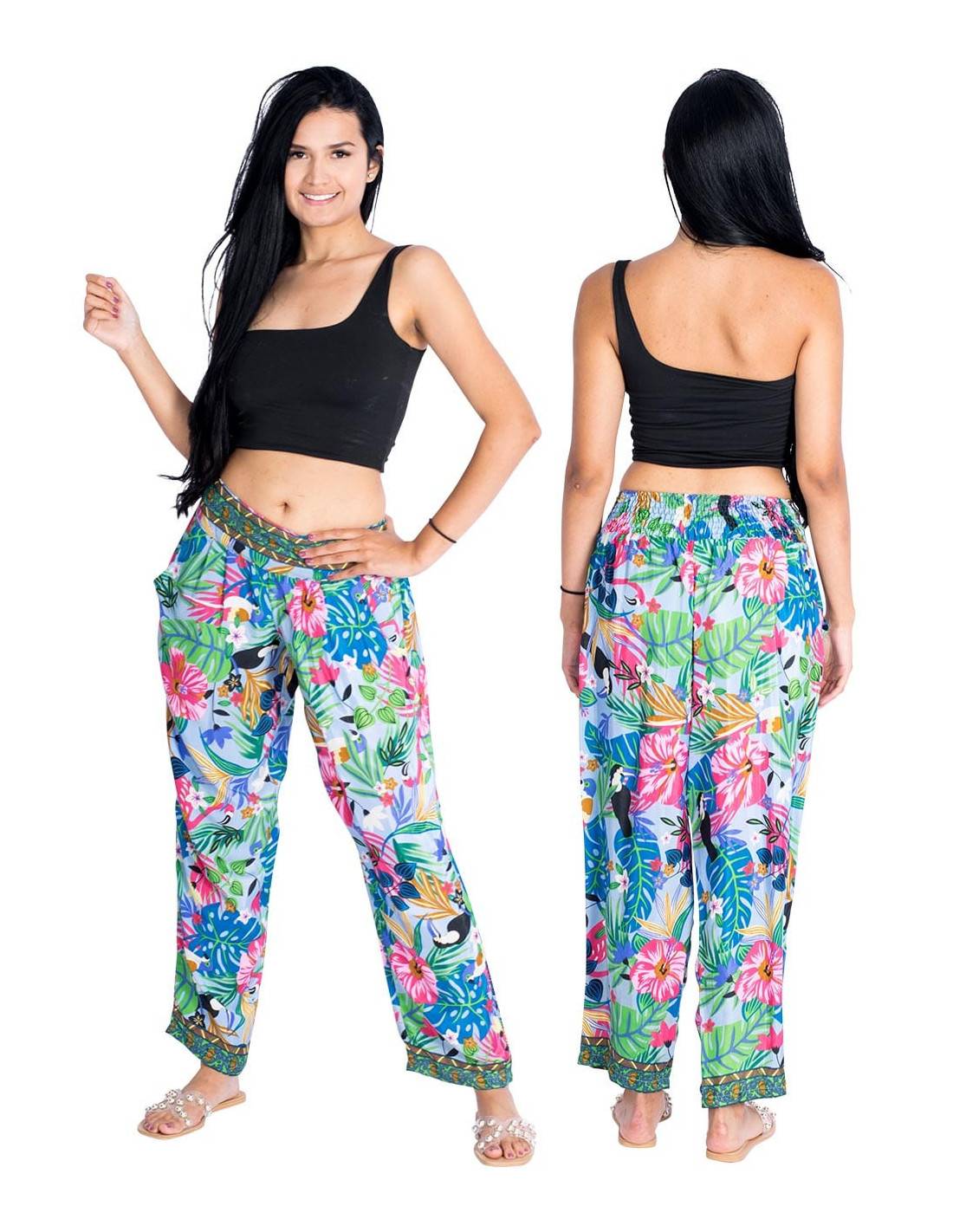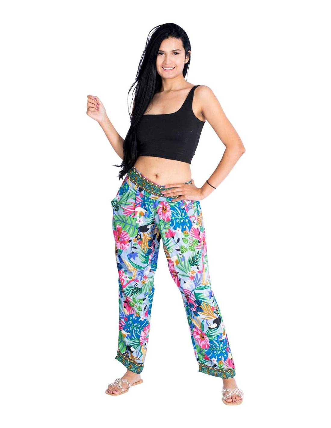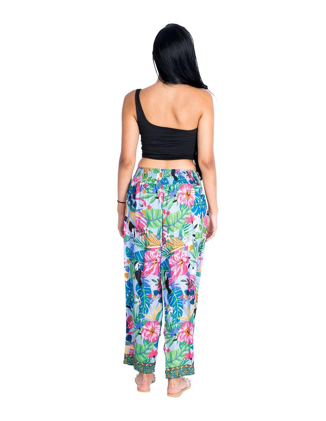 Vestido corto lazado en la nuca fabricado en seda de fondo verde claro y dibujos tonos rojos y verdes