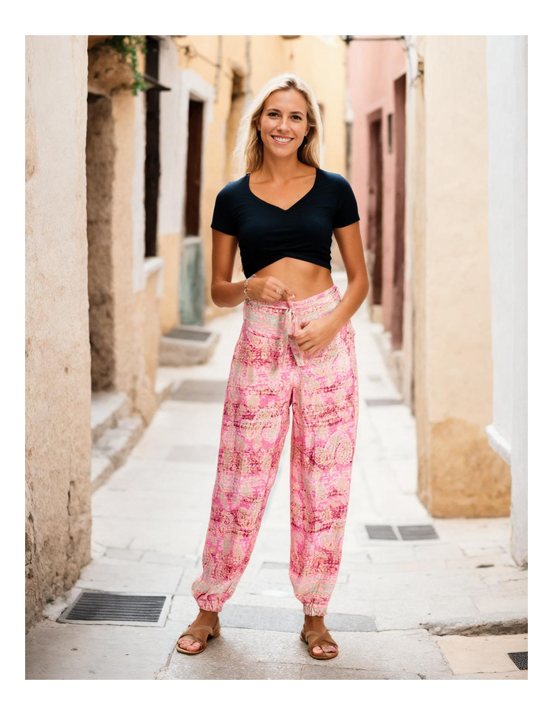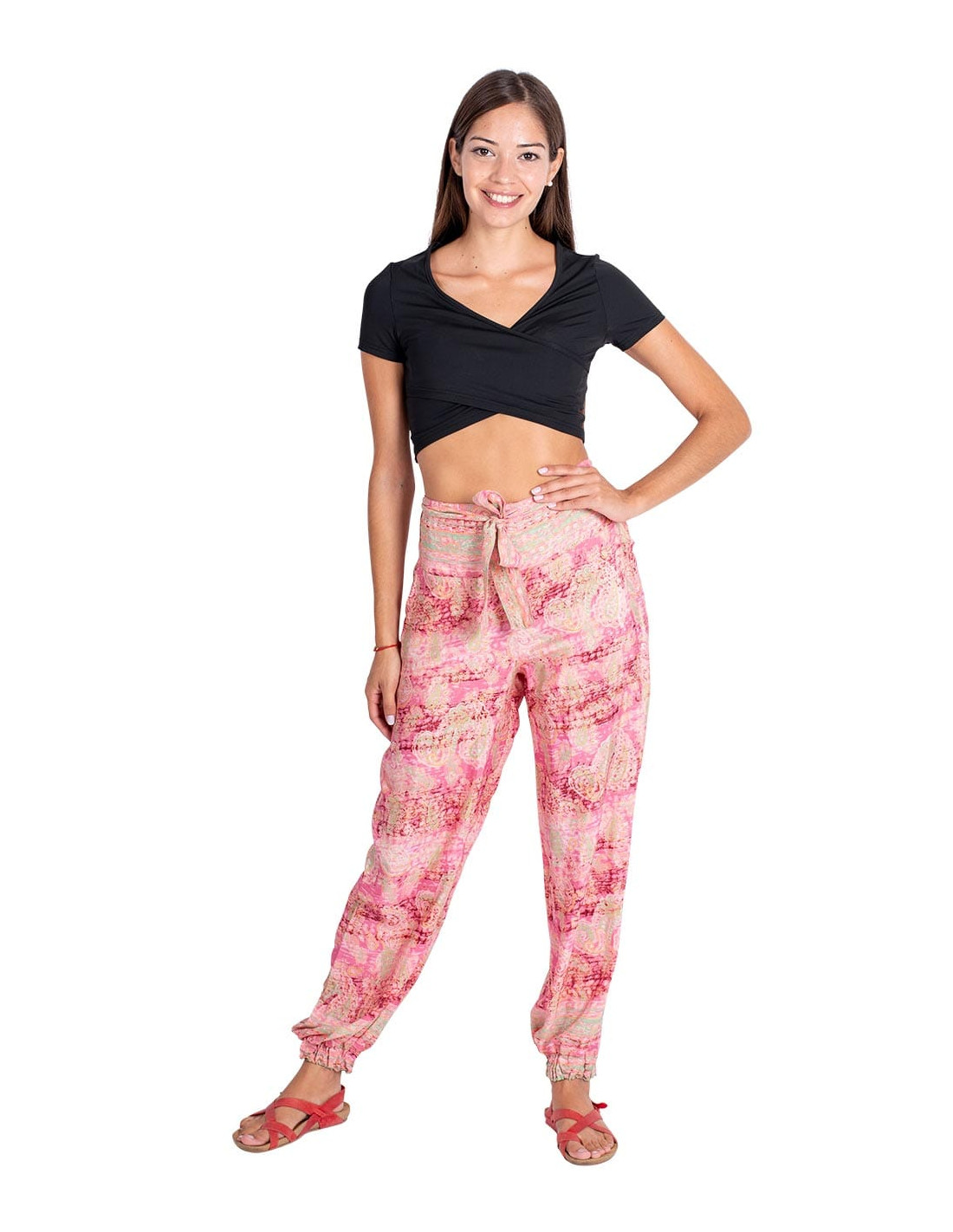 pantalon-mujer-lazado-seda-estampada-rosa