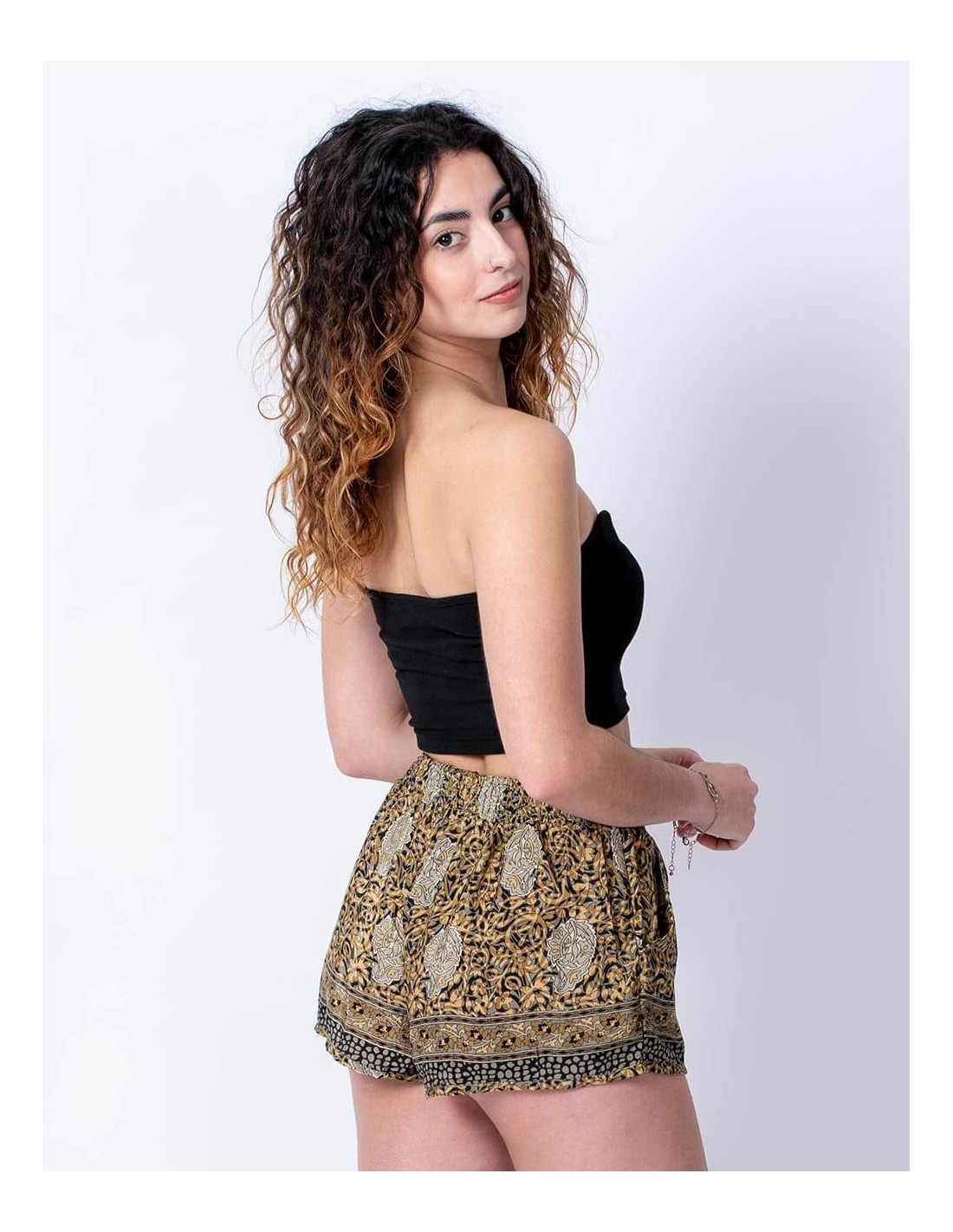 Vestido largo estilo hippie chic estampado con fondo celeste y dibujos etnicos en tonos rosas y azules