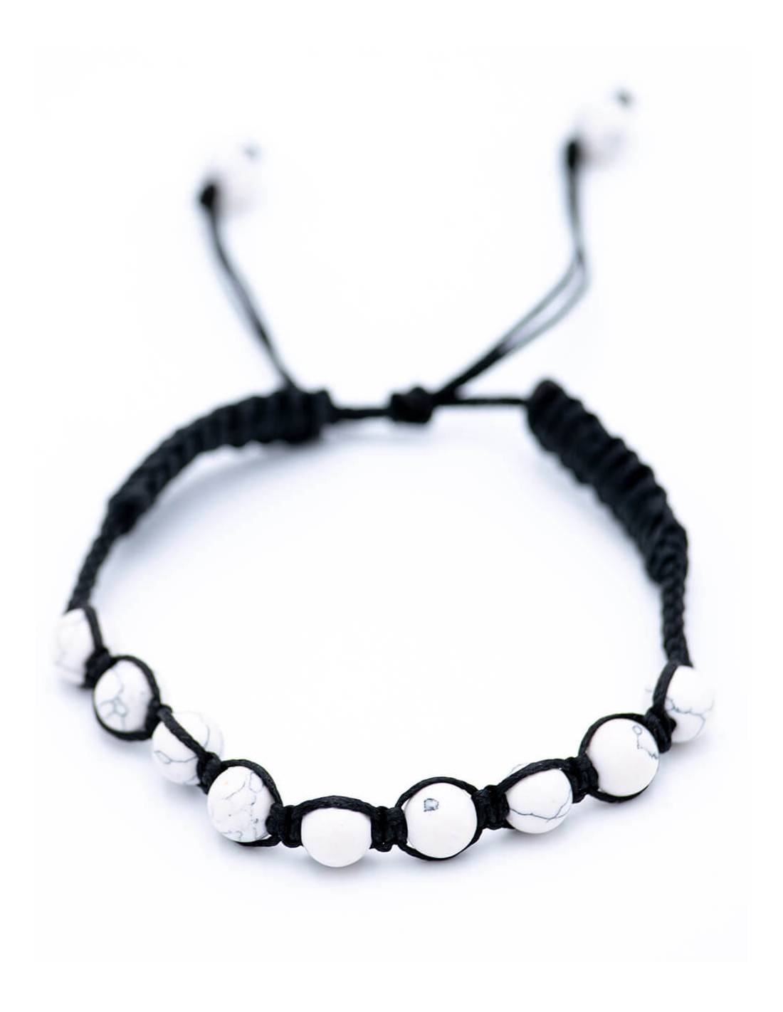 Pulsera fabricada en forma artesanal en macramé con hilo negro y el agregado de bolitas de piedra mineral Roca Volcanica