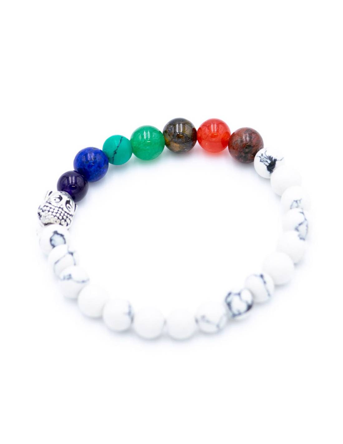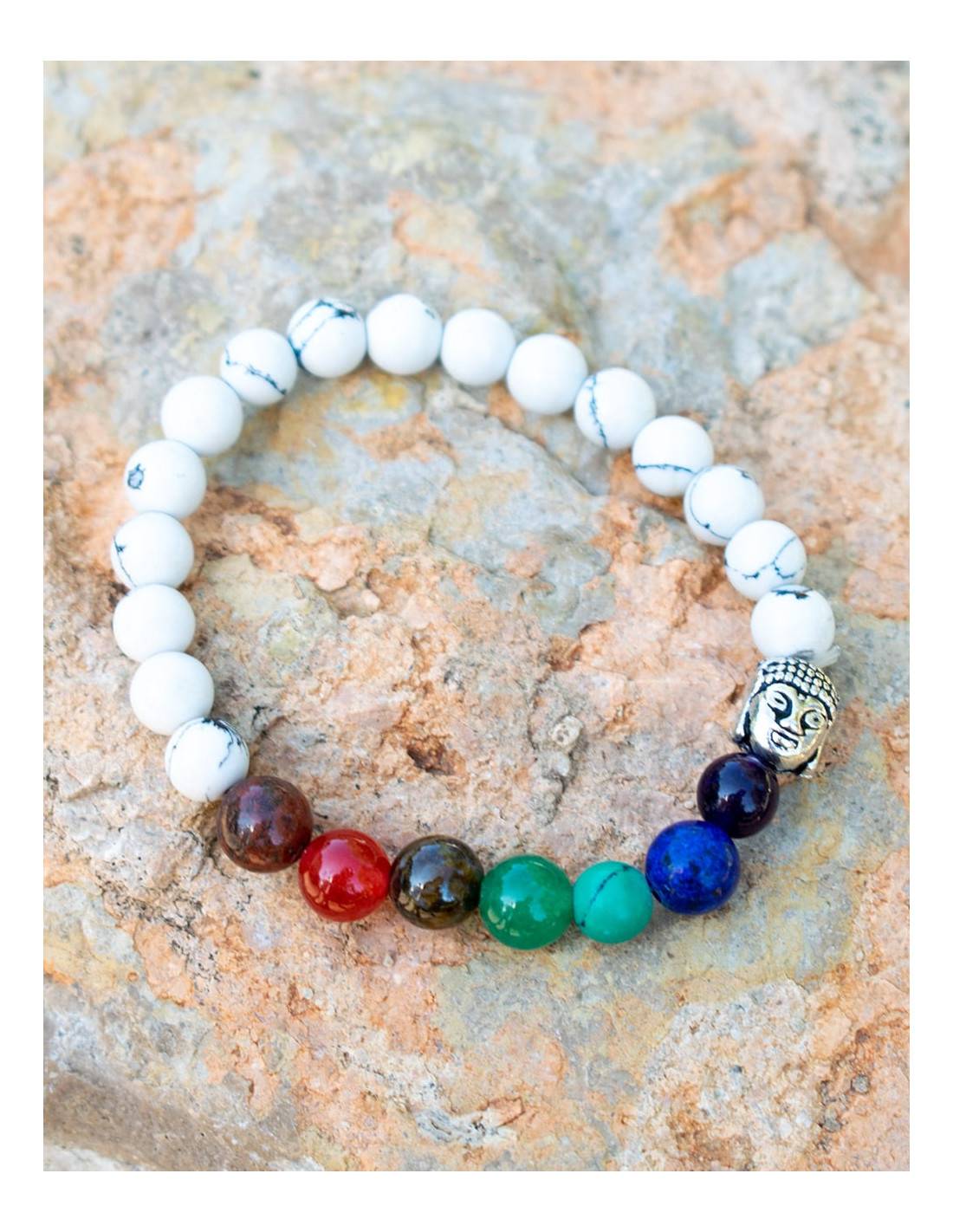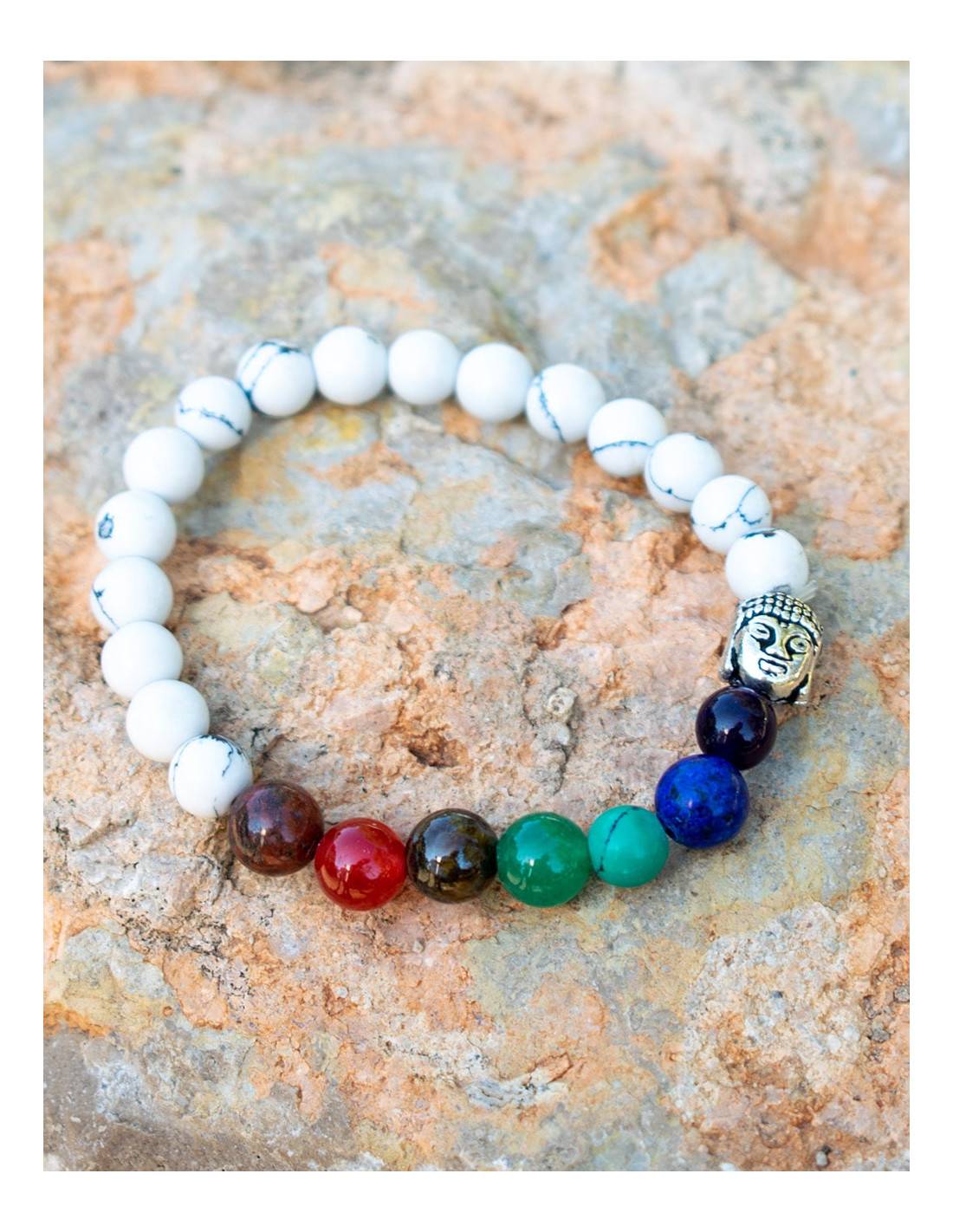 Pulsera elástica de la piedra mineral Roca Volcánica con 7 chakras con abalorio de cabeza de buda