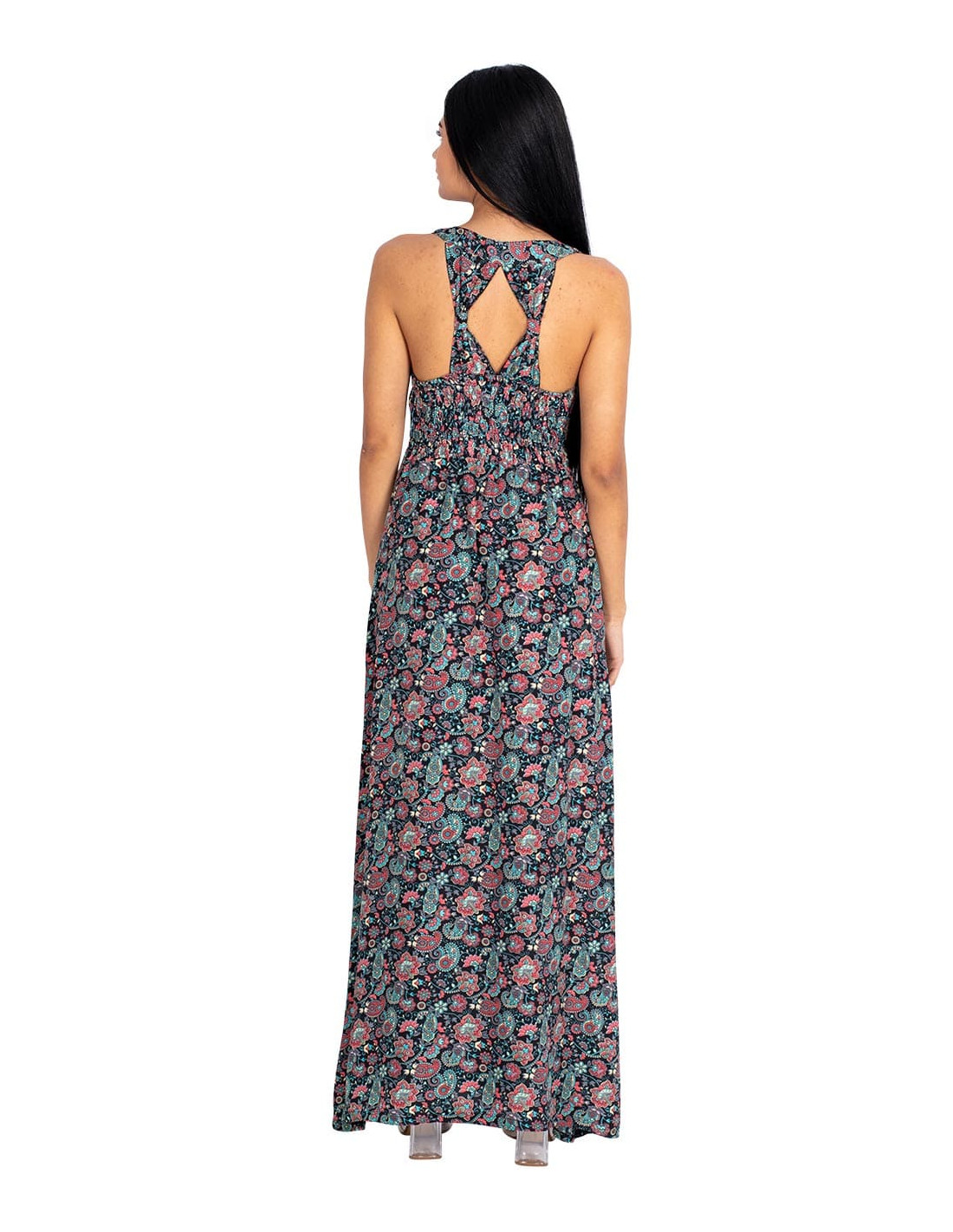 Falda corta de seda con goma parte posterior de la cintura. El color base es rojo y posee dibujos en diferentes tonos de naranja y blanco
