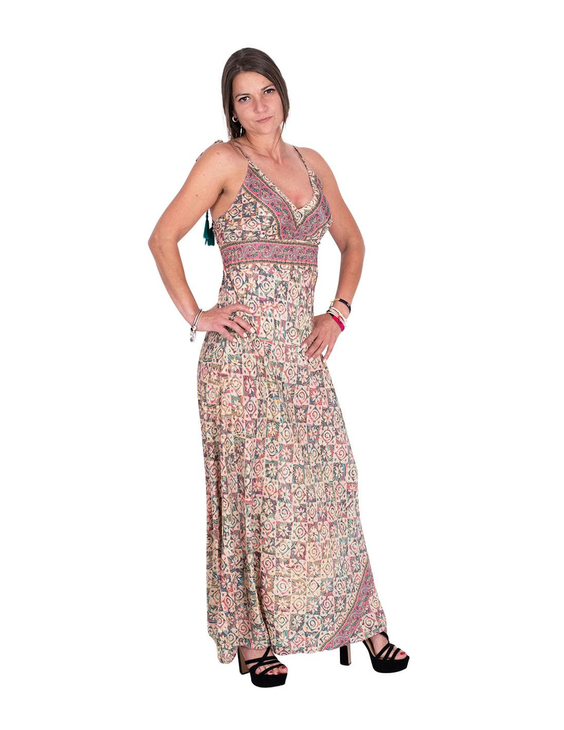 Tapiz étnico de algodón con fondo blanco y el simbolo del "om" dentro de un especie de mandala en color en negro