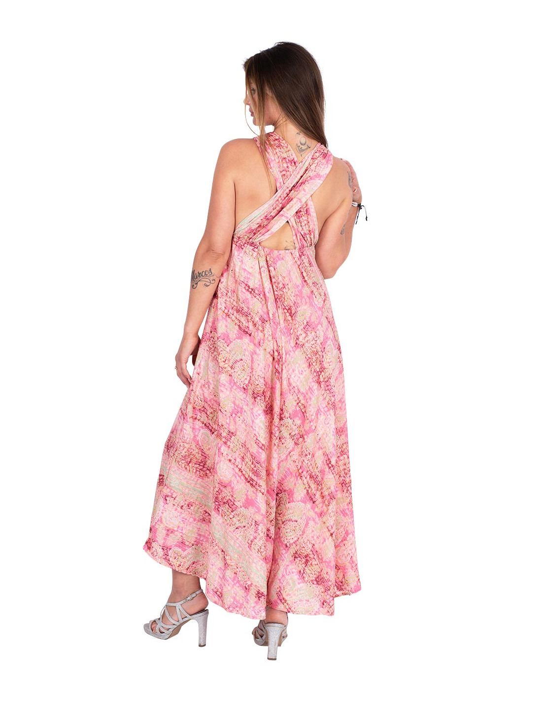 Vestido cruzado y lazado fabricado en seda de excelente calidad con dibujos paisley